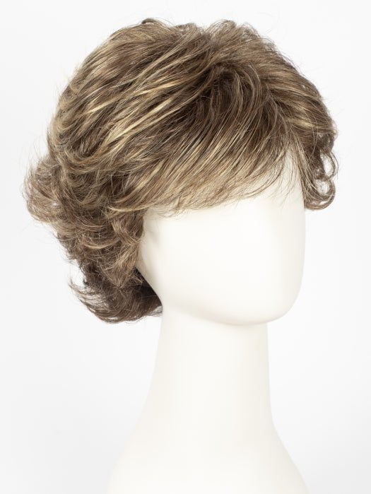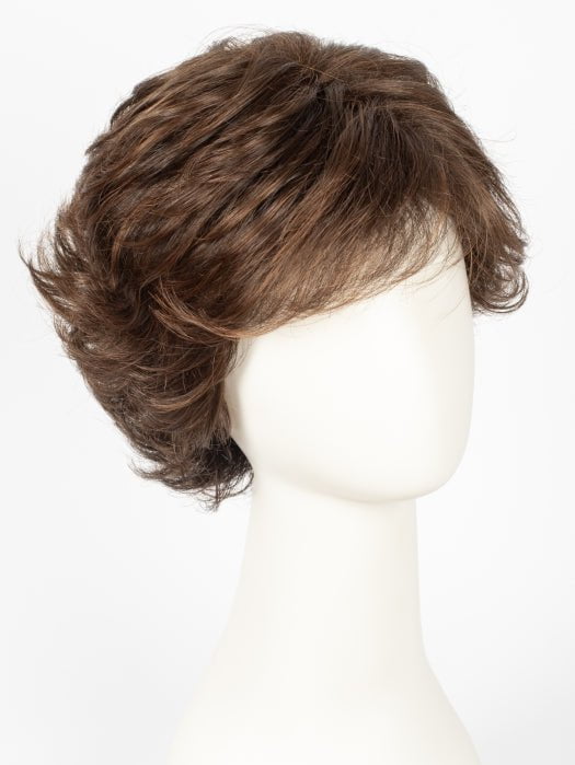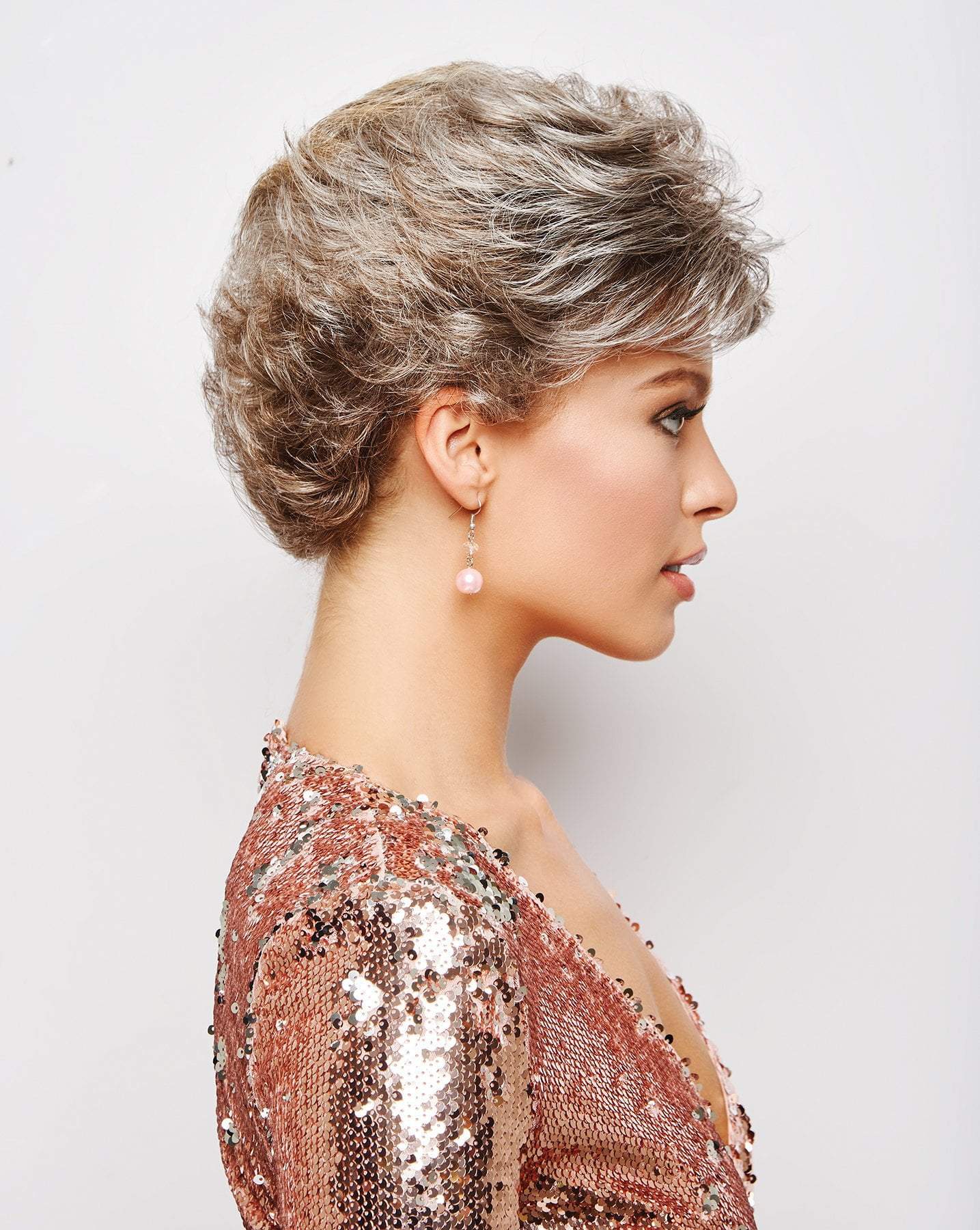 Resolve by Gabor is short style with timeless fluff that resurfaces with a contemporary touch. Soft layers in the front and side blend to an easy care brush-up back. Features include an inside hidden weft for a natural hairline. open ear tabs. and an open extended nape.