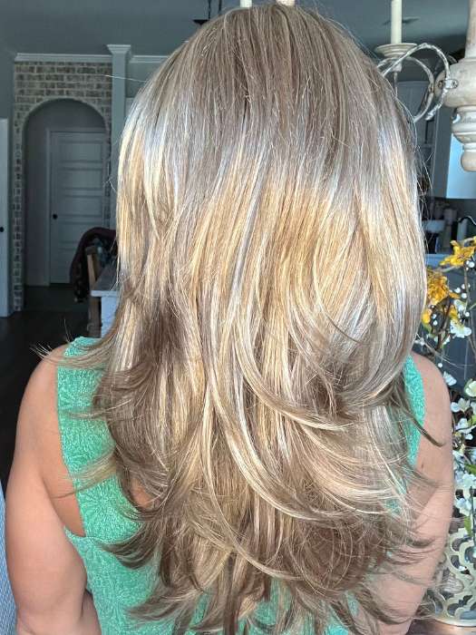 Sheena by Envy is a long. layered. and edgy synthetic wig. With almost 16 inches of long layered locks. this style takes fashion to great lengths. The full hand-tied monofilament top allows you the change the part giving you styling options. The lace front is pre-cut and ready-to-wear. The side bang can be worn away from the face or can be cut by your stylist. The hair is super straight with textured ends. which add a modern appeal. Achieve salon worthy locks in seconds with this long layered cut!