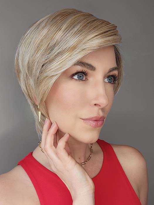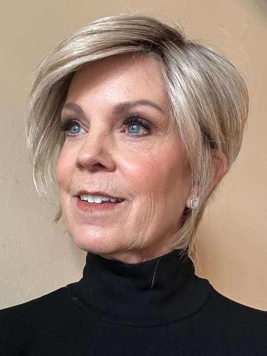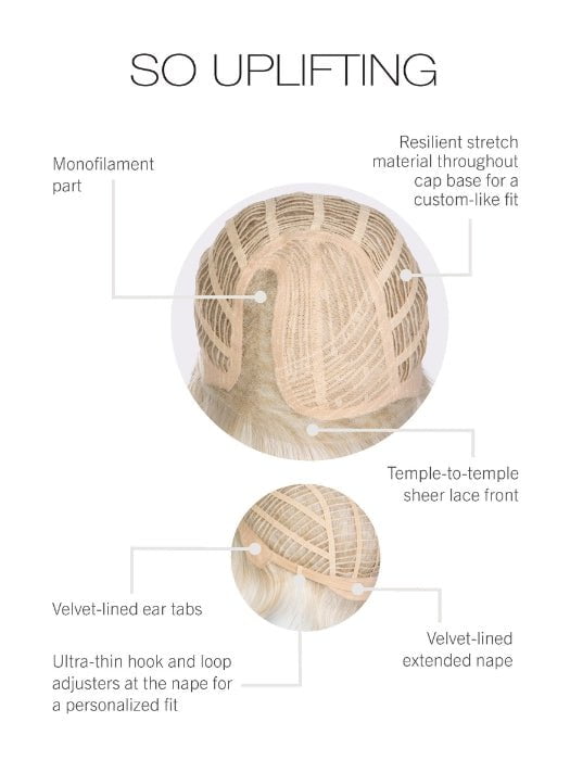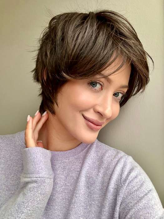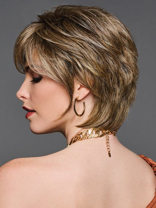 So Uplifting by Gabor presents a short. cropped hairstyle with a slightly tapered back and extended nape for a light and airy feel. The shattered layers have razor cut edges to create a voluminous look. This heat friendly synthetic wig allows you to smooth down the edges for a more feathery texture. This edgy short wig has an extended lace front for a realistic-looking hairline and monofilament part for a natural look.