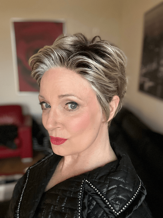 Sparkle Petite by is a texturized and voluminous . This short. face-framing cut includes a smooth front and top that blend into textured layers throughout the back and sides. It also features a tapered neckline. This ready-to-wear looks and feels like natural hair. And the open wefting in the cap creates better air ventilation. which provides more coolness on the scalp. It’s breathable and lightweight for a more comfortable fit. And it only weighs two and a quarter ounces! Sparkle Petite is also available in an cap size as well as an version with additional cap features.