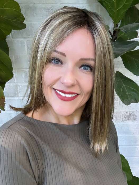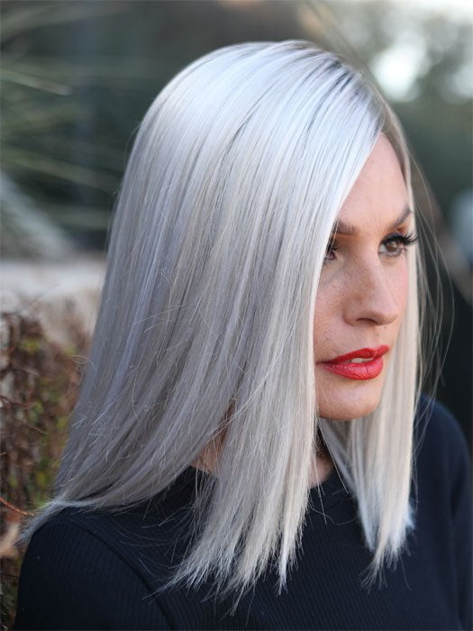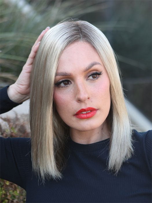 The Sutton Wig by Estetica is a medium length blunt cut bob. Her lace front with lace part means you’ll enjoy off-the-face styling with a natural-looking hairline and realistic scalp.