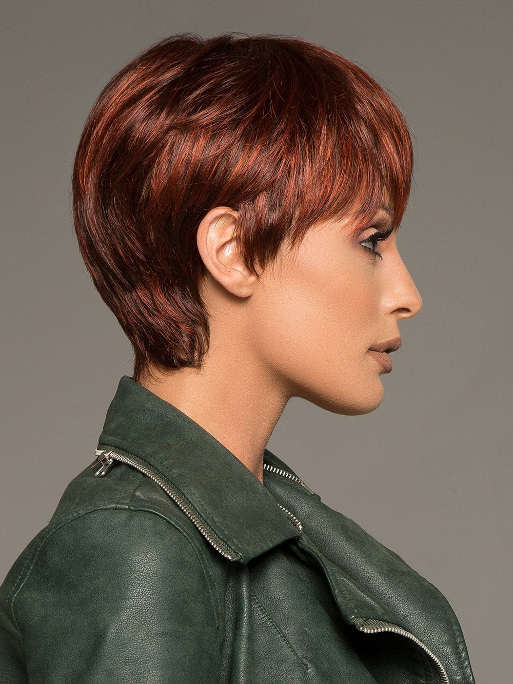 Swing by Ellen Wille is an edgy. short style that can be worn with volume or sleek and chic. The layers on the top and sides are longer and texturized to create a light. feathered look. Use a styling creme to amplify the layers! The nape is beautifully tapered to lay flat and ensure a secure and comfortable fit. Swing features an open wefted cap construction with a monofilament crown. for a more natural look. The Swing was created to celebrate Ellen’s 50 years of designing and is part of the Hair Power Collection!