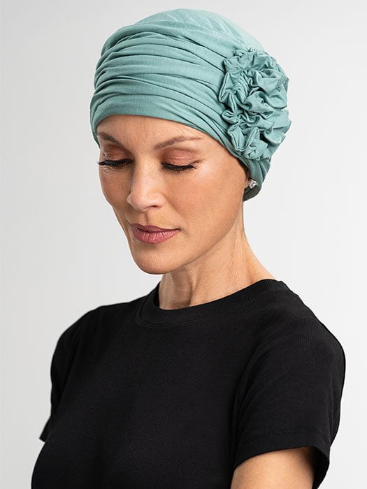 Let your style bloom with our ruched. double-lined Blossom Softie. Crafted with high quality. breathable bamboo viscose. this full-coverage cap is designed for coziness and warmth no matter the weather. Enjoy machine washable convenience and natural UV resistance. Antimicrobial. antibacterial and moisture-wicking properties keep you fresh all day.