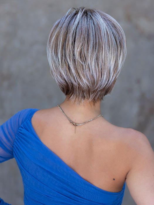 Zeal from the Noriko Collection is your not-so-average bob wig. This wig features stacked layers throughout. and a feathered fringe that can be worn to the side as an eyelash bang. or to the front for an edgy look. The basic cap and adjustable tabs in the nape allow just the right amount of comfort for snug. all day wear.